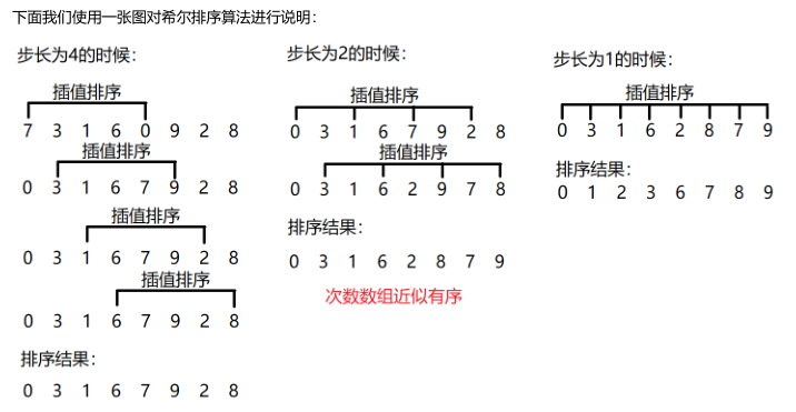insertionSort(array, start, step); //内部使用间隔为步长的插值排序算法