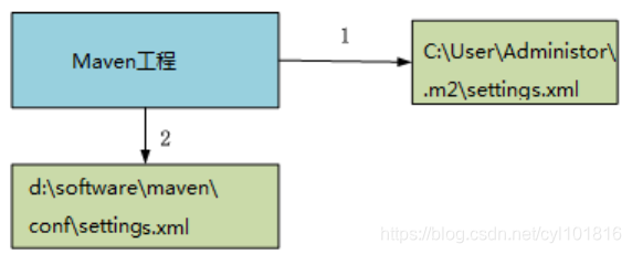 maven 仓库地址、私服等配置信息需要在 setting.xml 文件中配置,分为全局配置和用户配置。在 maven 安装目录下的有 conf/setting.xml 文件,此 setting.xml 文件用于 maven 的所有 project项目,它作为 maven 的全局配置。如需要个性配置则需要在用户配置中设置,用户配置的 setting.xml 文件默认的位置在:${user.dir}/.m2/settings.xml 目录中,${user.dir} 指windows 中的用户目录。maven会先找用户配置,如果找到则以用户配置文件为准,否则使用全局配置文件。