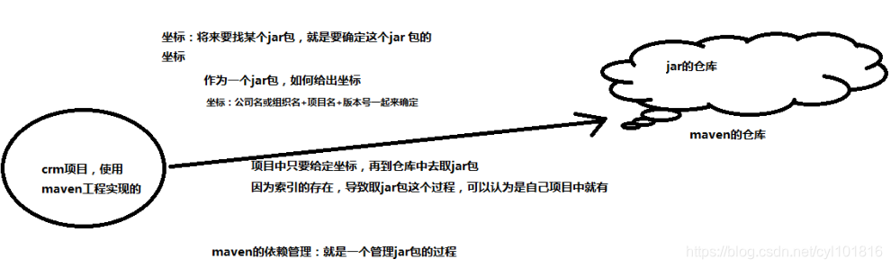 通过分析发现:maven 工程中不直接将 jar 包导入到工程中,而是通过在 pom.xml 文件中添加所需 jar包的坐标,这样就很好的避免了 jar 直接引入进来,在需要用到 jar 包的时候,只要查找 pom.xml 文件,再通过 pom.xml 文件中的坐标,到一个专门用于”存放 jar 包的仓库”(maven 仓库)中根据坐标从而找到这些 jar 包,再把这些 jar 包拿去运行。