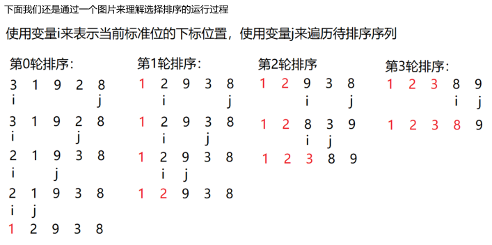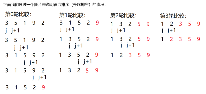 //[3]用最外层循环i控制比较的轮次,第i轮比较的时候,就有i个元素已经有序,则这i个元素是不需要进行排序的,而在整个长度为n的数组中,只要进行n-1轮排序即可