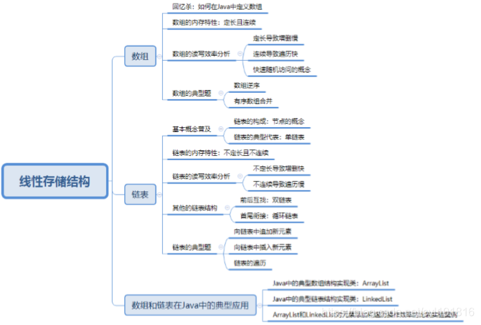- 线性结构拥有两种不同的存储结构,即顺序存储结构和链式存储结构。顺序存储的线性表称为顺序表,顺序表中的存储元素是连续的,链式存储的线性表称为链表,链表中的存储元素不一定是连续的,元素节点中存放数据元素以及相邻元素的地址信息。