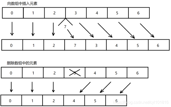 - 数组一旦被创建,其长度是不可以被改变的,如果需要修改就要重新新建一个数组,在Java中创建对象是十分消耗时间和内存的一种操作,所以涉及到数组元素的插入和删除,必然会对数组对象的重新创建和数组元素的拷贝