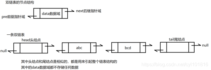 如果我们在链表的节点中定义两个指针域,一个指向当前节点的下一个节点,一个指向当前节点的前一个节点那么我们就可以从前后两个方向来遍历这个链表,由此也就产生了双链表结构。