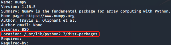 2.在命令行中运行以下命令查看具体包的路径等信息(以numpy为例):