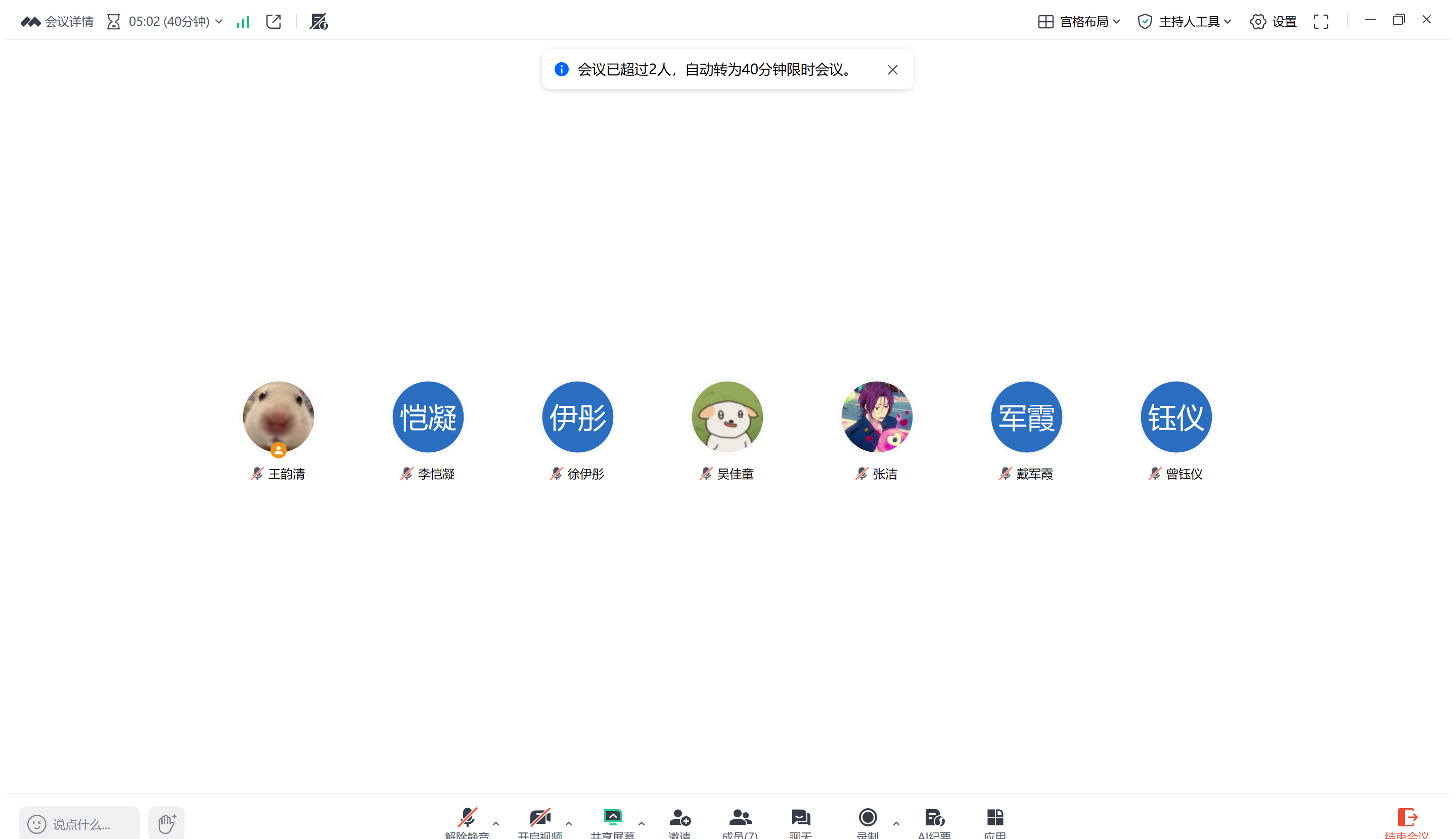 因为各成员有不同的课程与实习安排,难以找到大家都在的线下时间,所以采用线上会议代替站立式会议。