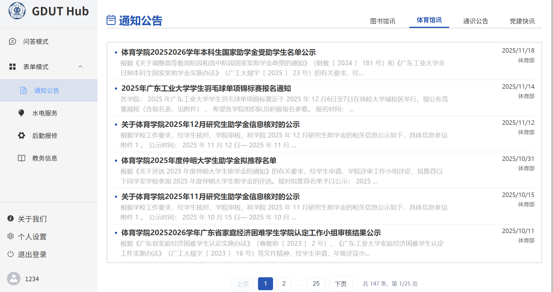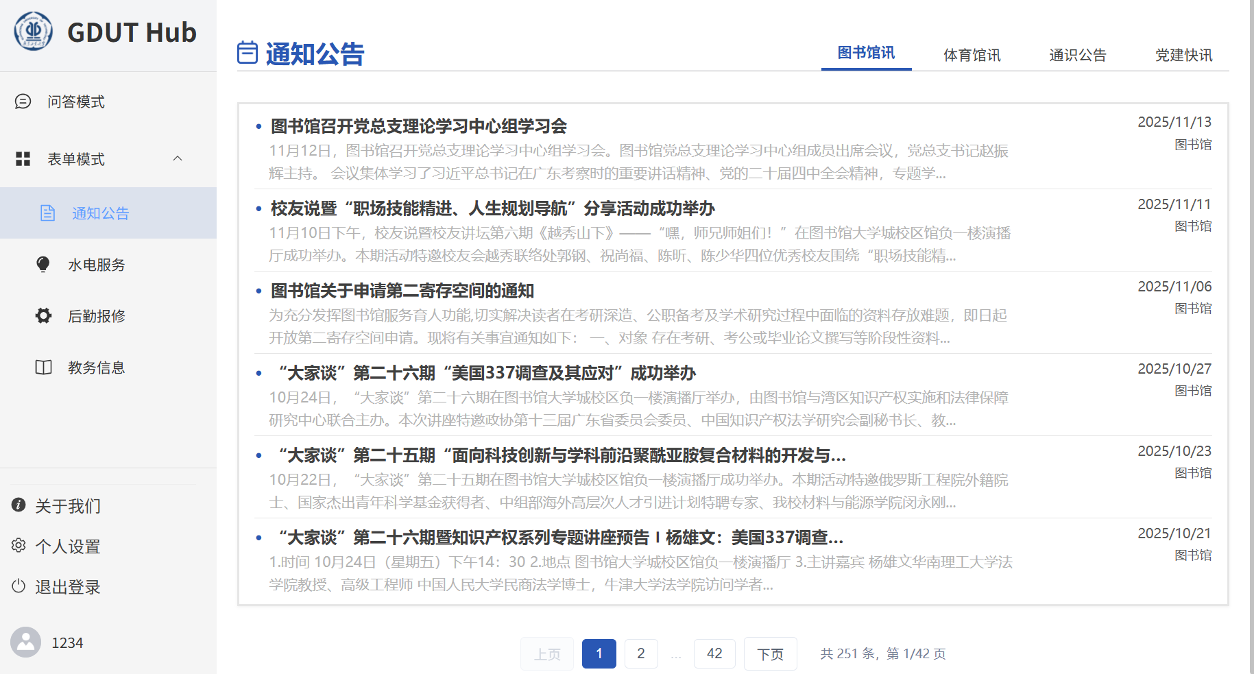 - 按类型分类:校园通知、水电服务、教务公告、后勤通知等。