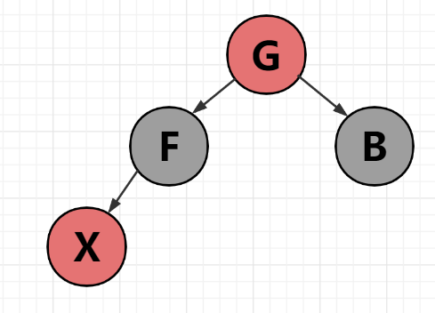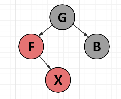 (下图的X代表被插入节点,F代表被插入节点的父节点,G代表被插入节点的父节点的父节点,B代表被插入节点的兄弟节点):