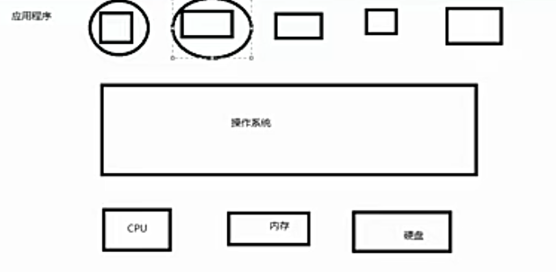 qq,所有东西是存储在硬盘上的某个角落的,是你设定的》》鼠标一点击,这属于输入输出设备,就会把qq的应用程序加载到内存,应用程序就是一个.exe的文件》》cpu通过操作系统将内存中的应用程序执行》》执行之后就会跳出登录页面