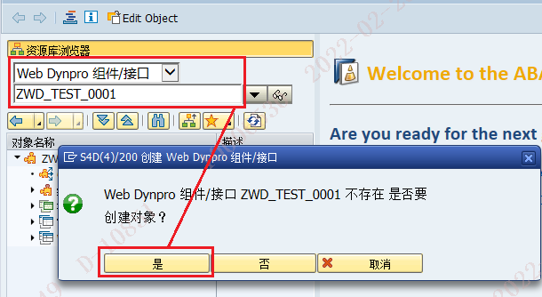 1.运行Tcode:SE80,选择Web Dynpro组件/接口,输入对象名