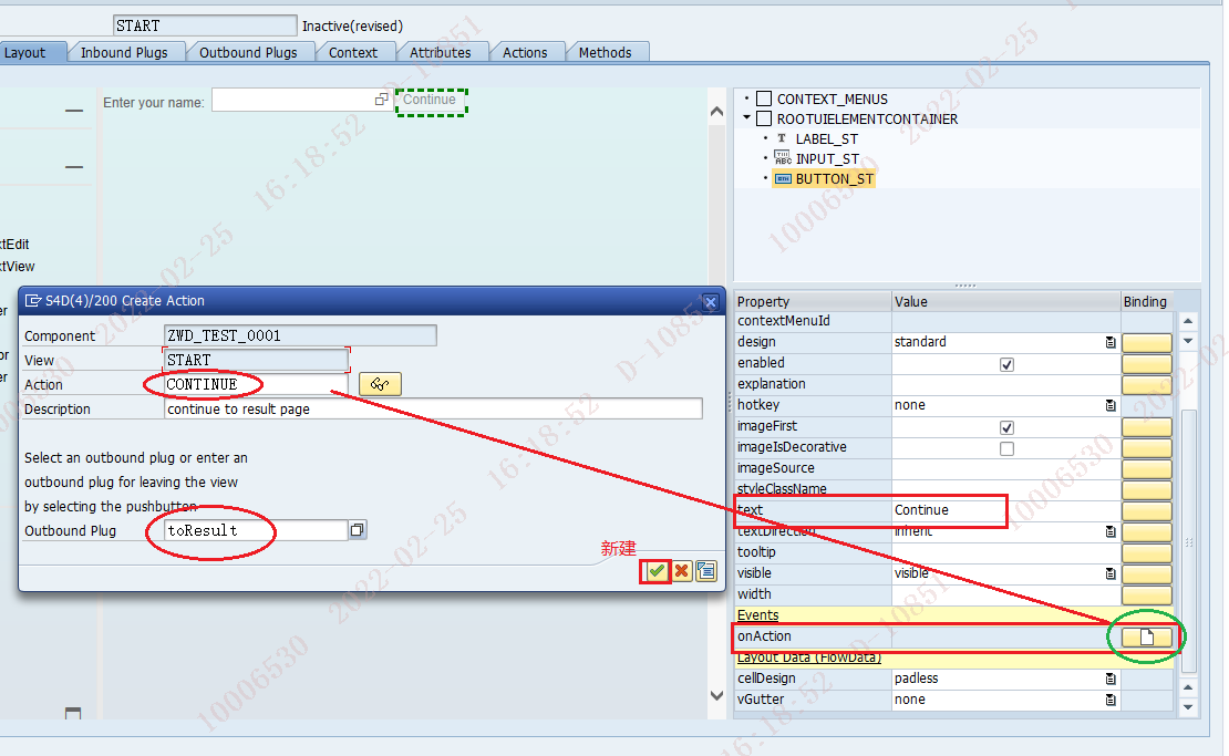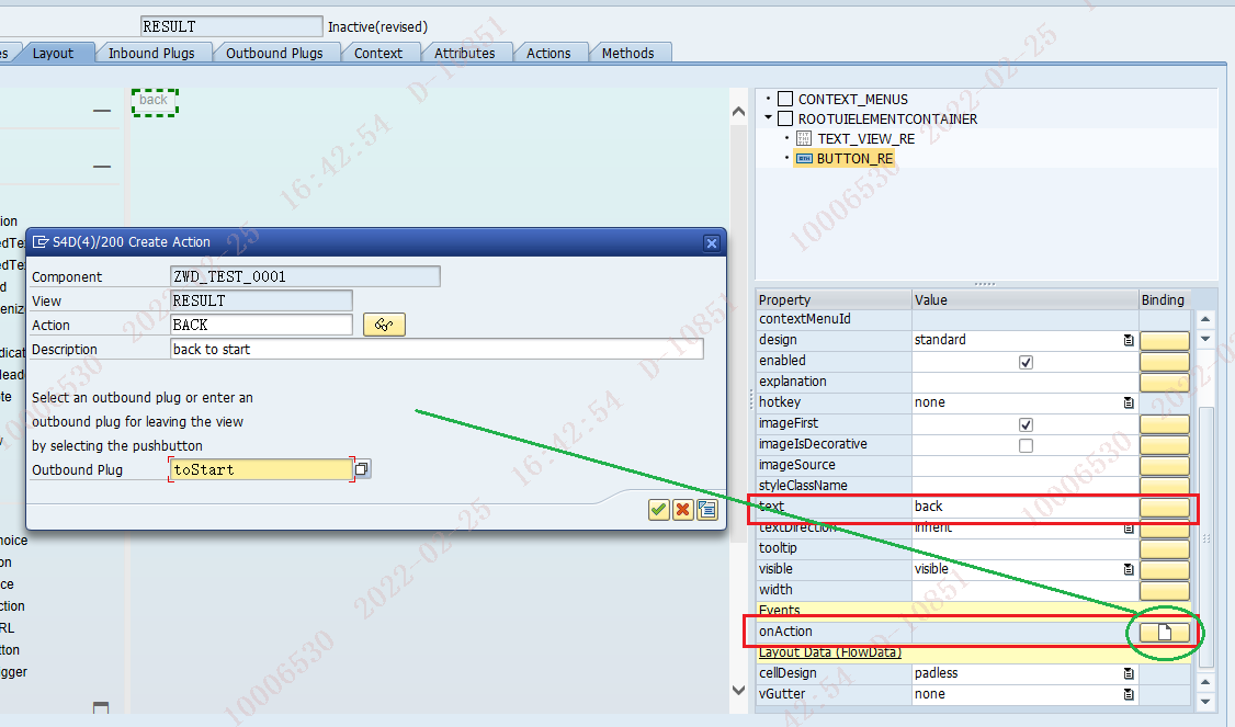 7.在 button 的属性中添加如下,主要是 onaction 事件。