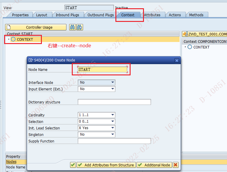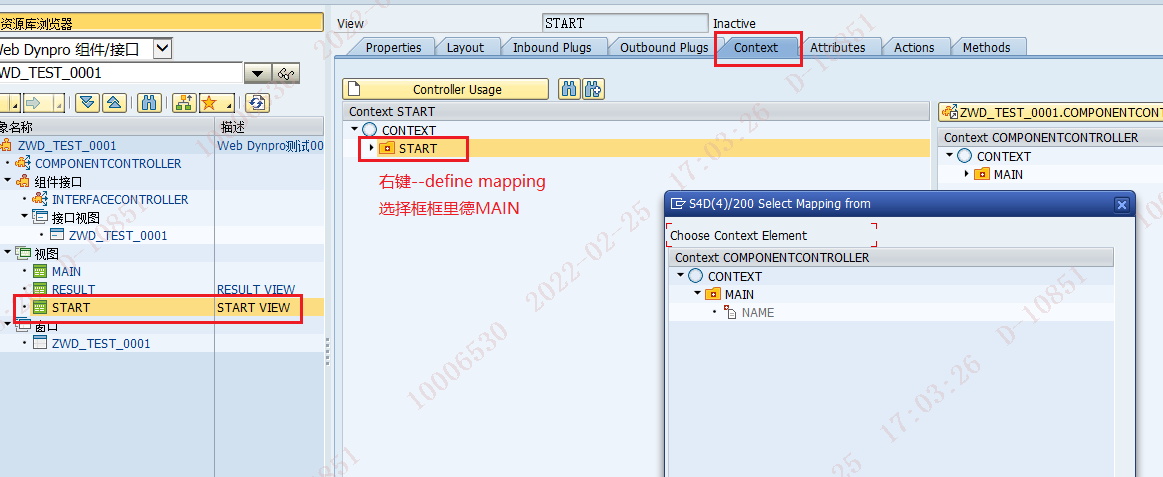 解释:建立CONPONENT CONTROLLER中的CONTEXT节点并且和VIEW CONTEXT相应节点映射,这样就相当于把全局变量和局部变量相关联