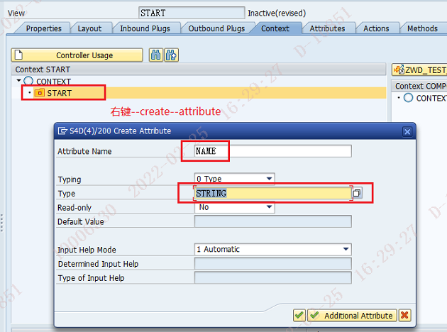 解释:CONTEXT须和VIEWS上的某些控件的特定属性绑定,这样当我们改变了CONTEXT的某个节点的数据,那么相应控件的值也会跟着改变,比如这个我们创建了CONTEXT的一个节点下的NAME字段用于存放和绑定INPUT BOX里面的VALUE属性。
