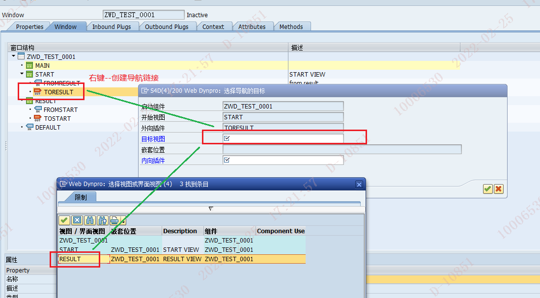 解释:建立VIEWS之间的导航,我们需要分别在不同的VIEWS里面插入相应的OUTBOUND 和INBOUND PLUG,并最终在WINDOWS里面建立他们的NAVIGATION LINK。