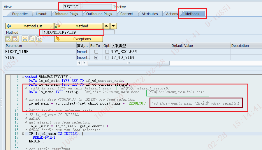 16.在 result 的 Methods页签WDDOMODIFYVIEW 中添加以下代码:
