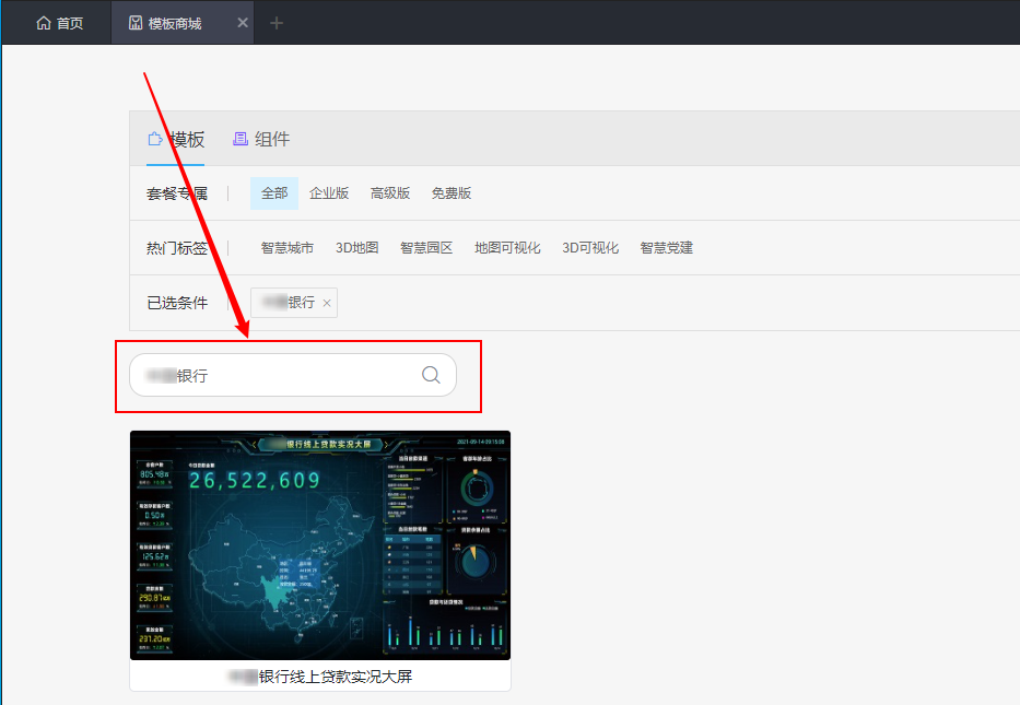 在模板商城内,可以滑动页面选取模板,也可以根据具体需求在“输入框”进行关键词检索: