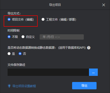 如果想将大屏项目发给他人,而且对方可以继续编辑该大屏项目,可以采用该方式,此时导出的文件类型为.bvp格式。