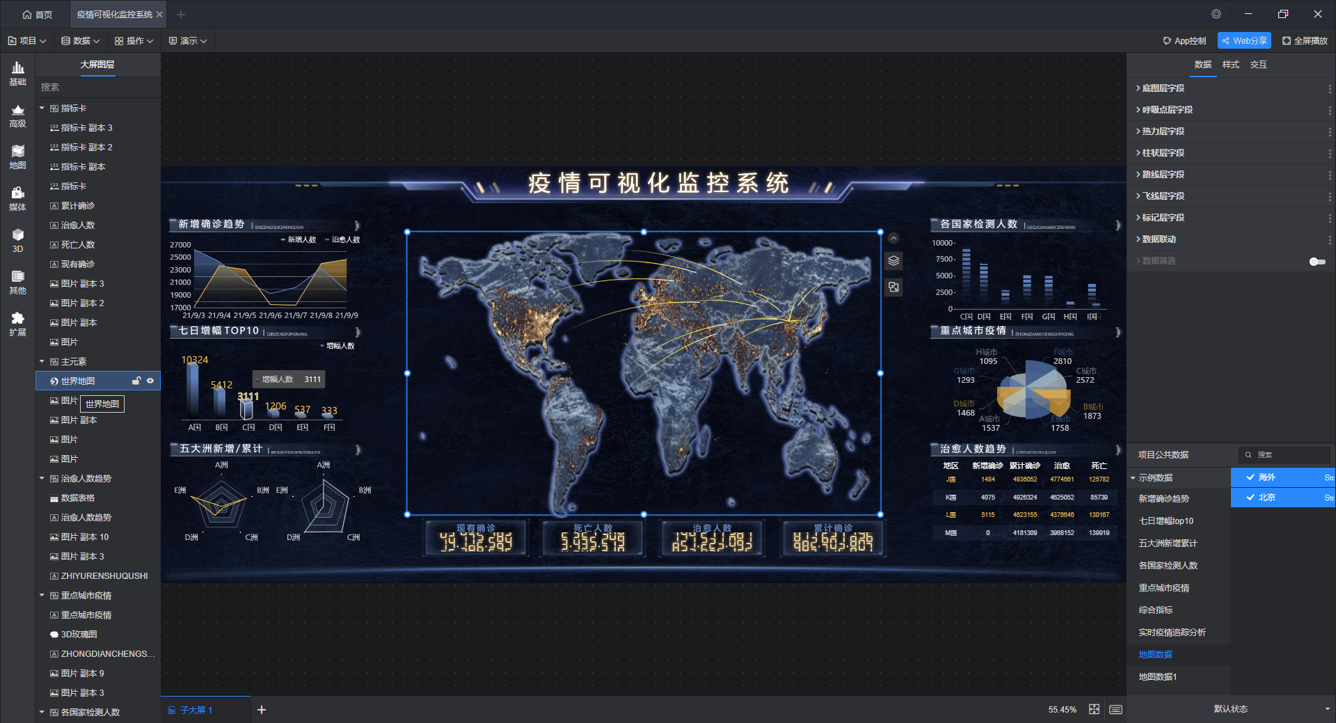 为了满足视觉需要,数据的可视化已经逐渐走进日常生活并成为潮流,而能如此简单快捷就能完成大屏制作的工具就摆在面前,还不快点动手试一试吗!