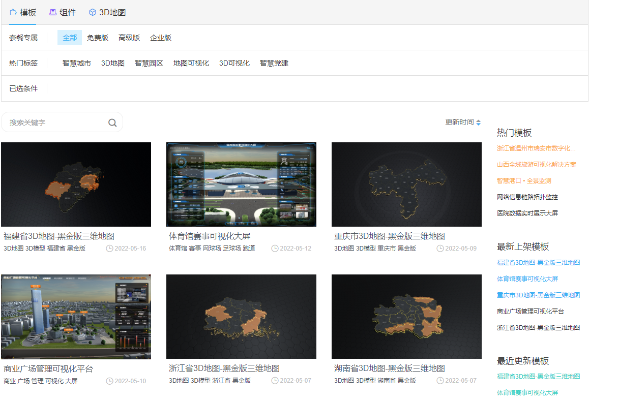 资源中心每日更新大屏模板。涵盖各个行业,多种尺寸和风格