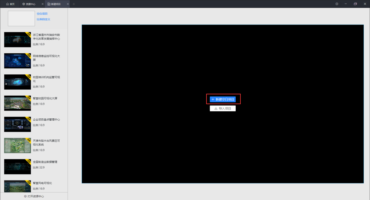 新建一个大屏是第一步,可以在山海鲸可视化软件内找到资源中心进行搜索,找到模板大屏,这样就可以得到一个精美且实用的可视化大屏;