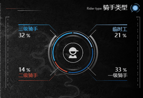 本大屏对不同的外卖骑手的等级进行划分,使数据更加清晰的表现出来。