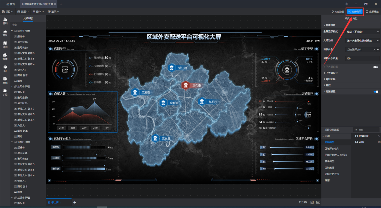 以上就是利用山海鲸可视化软件内的可视化组件制作区域外卖配送平台可视化大屏的全过程。