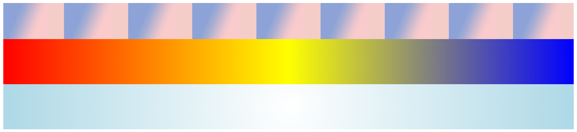 <!DOCTYPE html> <html lang="en"> <head> <meta charset="UTF-8"> <title>Document</title> <style> .div1{ width:100%;height: 80px; background-image: url(../photo/1.jpg); background-position: 50%;/*图片的中心点*/ background-size: auto 80px; } .div2{ height: 100px; background-image: linear-gradient(to right,red,yellow,blue); } .div3{ height: 100px; background-image: radial-gradient(circle,white,lightblue); } </style> </head> <body> <div class="div1"></div> <div class="div2"></div> <div class="div3"></div> </body> </html>