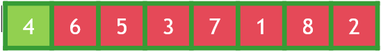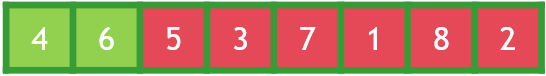 现将该数组分为两个部分,第一部分为有序部分,第二部分为无序部分,在初始时,有序部分的元素数量为0,全部为无序部分: