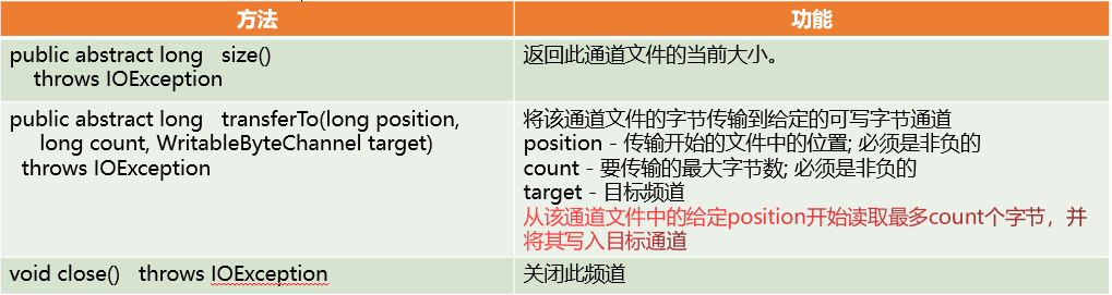 FileChannel类里的方法: