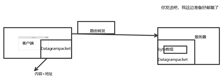 - 5) 释放资源 简单来说就是服务器先挖一个DatagramPacket的邮箱,时刻准备着接受邮件,客户端这边准备好所要邮寄的东西,写好所要邮寄的地址(DatagramPacket+服务器地址+端口)不然邮递员不知道把邮件往那发送。