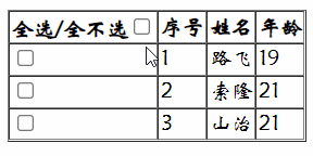 <tr><th>用户名</th><th>密码</th><th>年龄</th></tr>