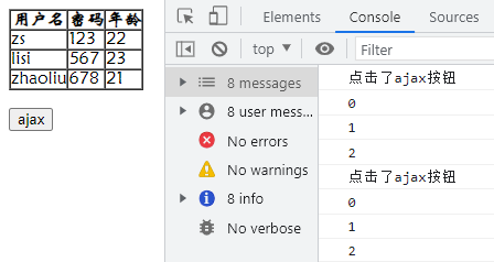 (3)回调函数得到数组数据,循环遍历数组得到每一项组成tr td,把他追加到(append)表格中去。