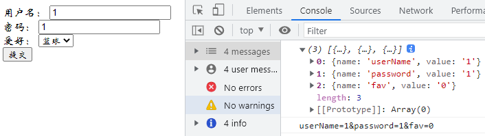 将用作提交的表单元素的值编译成拥有name和value对象组成的数组。例如[ { name: a value: 1 }, { name: b value: 2 },...]