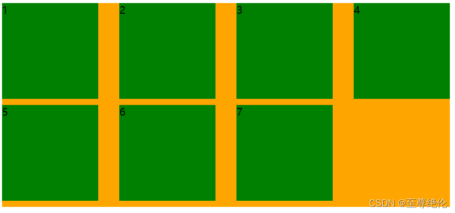 1个container父元素包裹了7个item子元素,1行想设置4个,最后一行的item不到4个,但想靠左