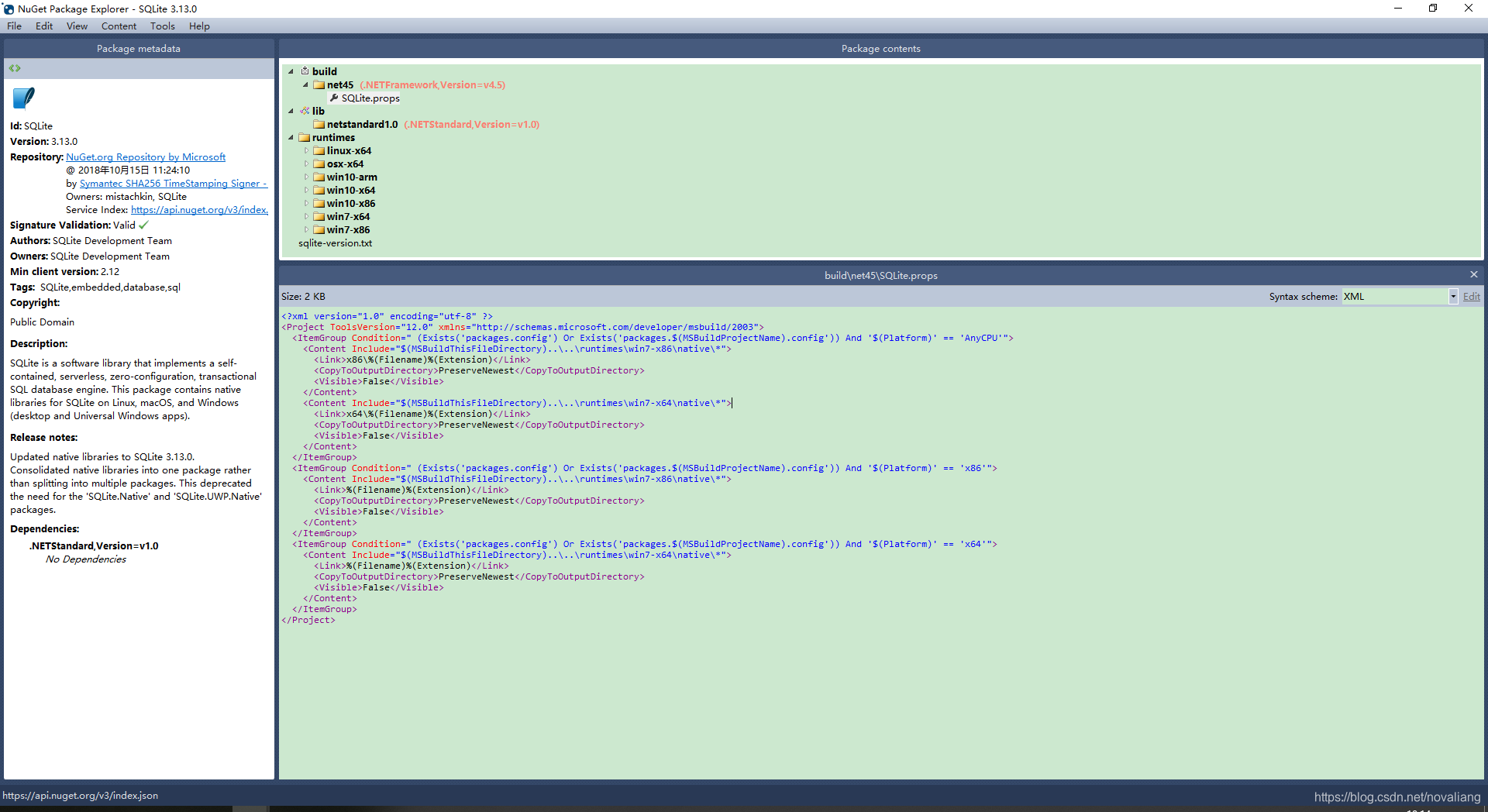 接下来我们重点说一下这两个文件的内容,在上述示例中,sqlite创建的是一个 props ,因为在项目构建的时候,需要导入的 dll 是必须存在的,否则会提示找不到文件。