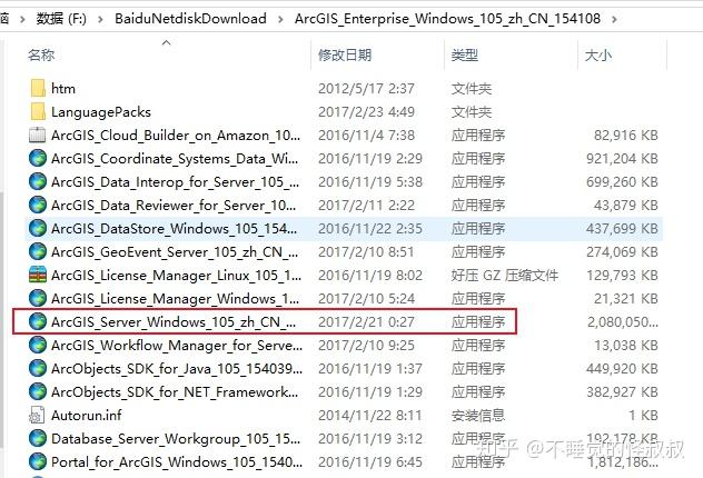 找到ArcGIS_Server_Windows_105_zh_CN_155420.exe,双击安装,这个是ArcGIS Server的安装包。