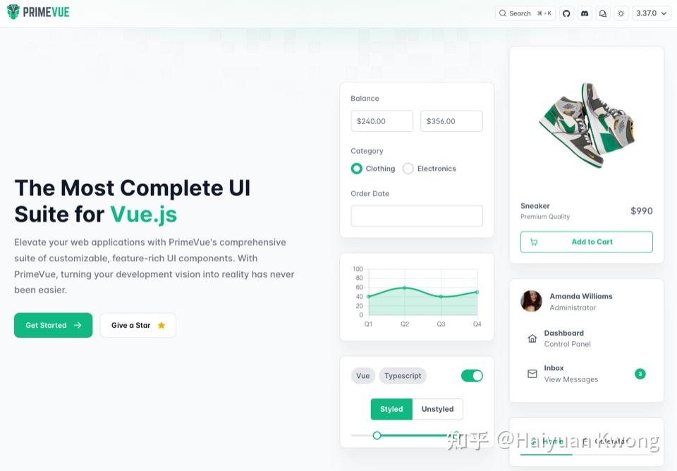 例如,Vant 提供移动优先组件,Quasar 提供跨平台组件。有些库(如 Buefy)比其他库更小更轻量级。另一些库,如 PrimeVue,则更加强大,并配备了大量工具。