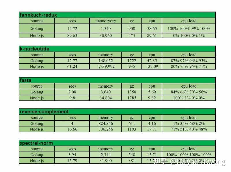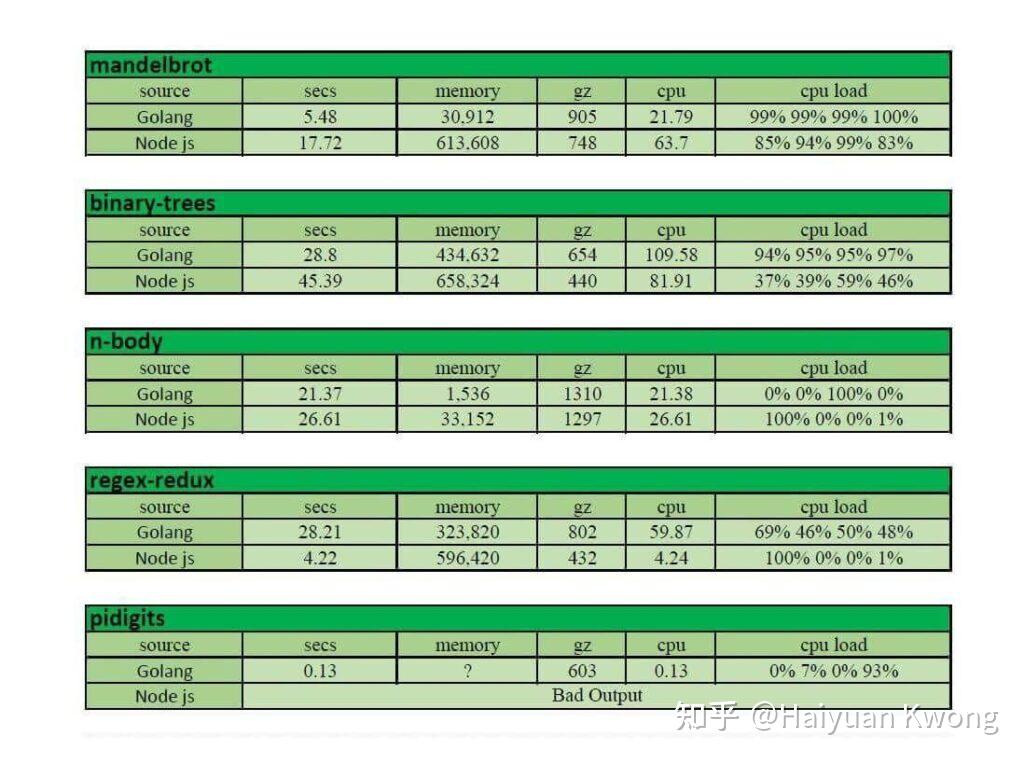 在这个性能比较中,Go在编程语言的执行速度以及编译和执行指令的速度方面超过了Node.js。