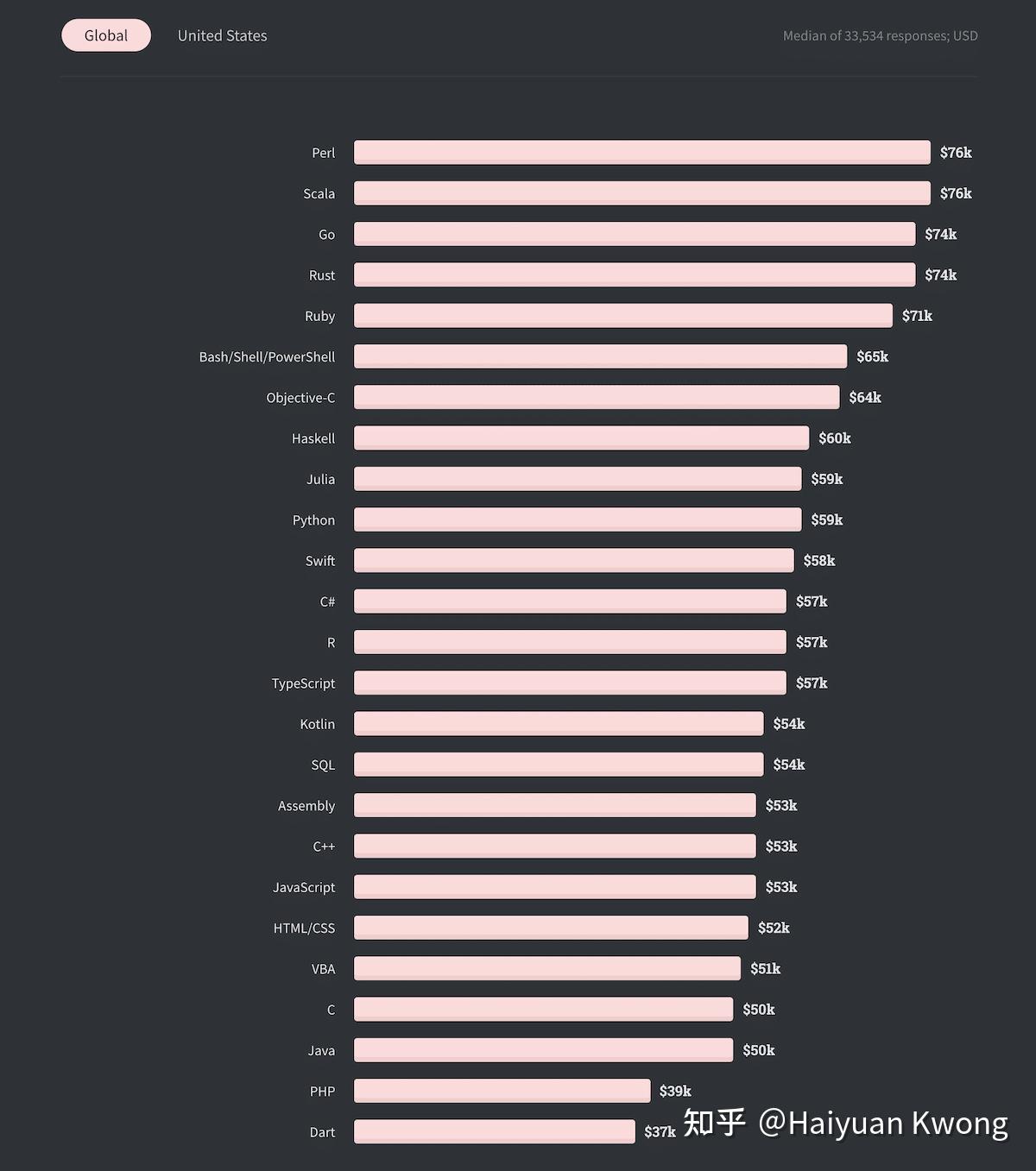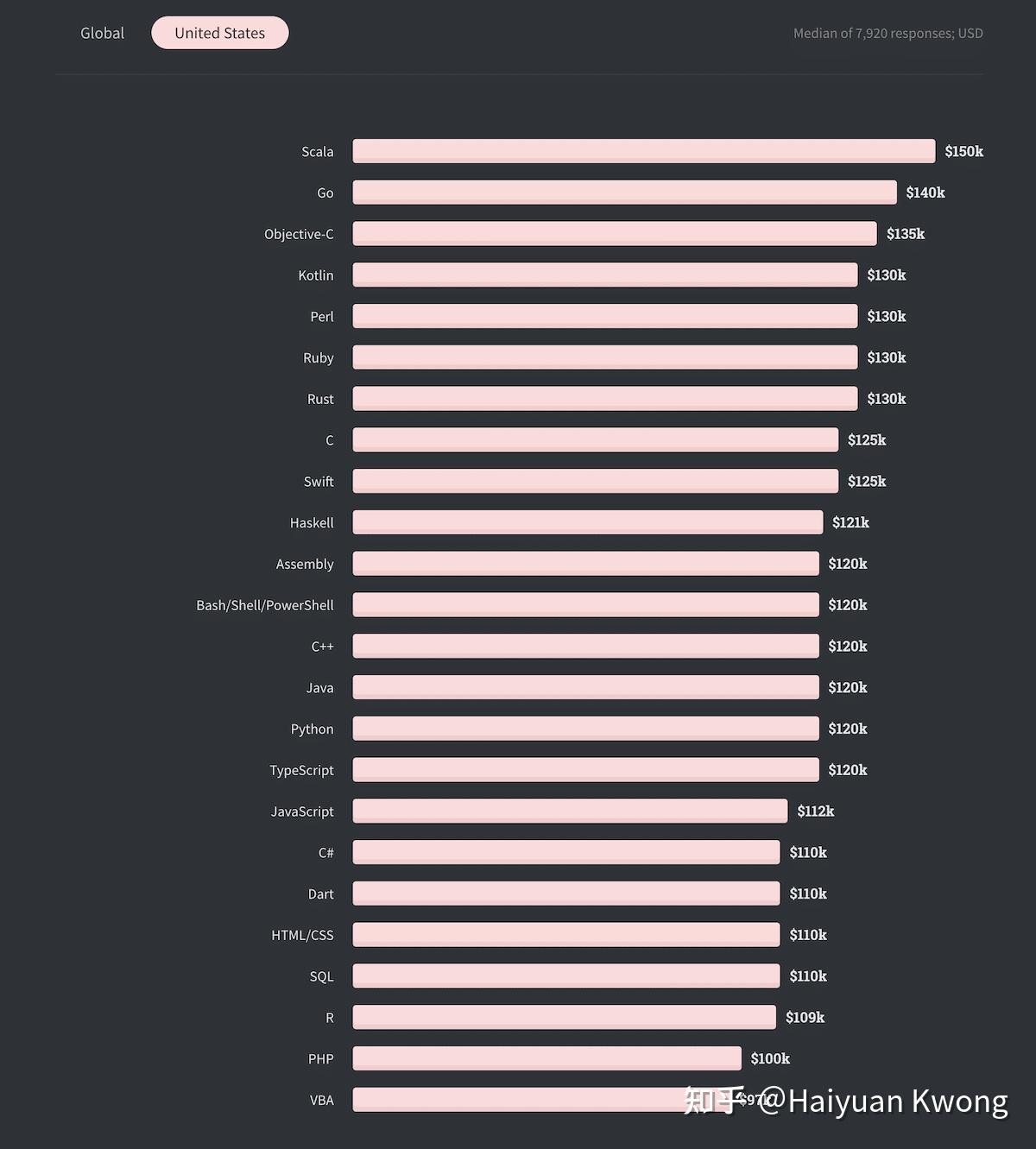 就每项技术的工资而言,让我们看看Stackoverflow Survey 2020。