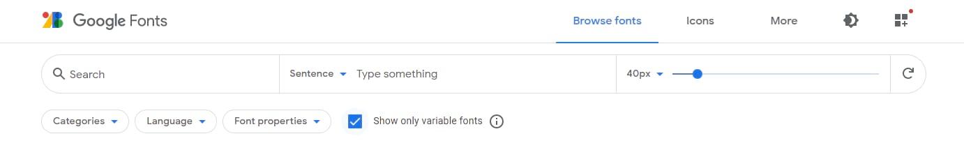 Variable fonts也开始流行,并得到所有现代浏览器的支持。这些很棒,因为它允许一个字体文件转换为不同的属性。 Google Fonts有很多可变字体可供选择,您甚至可以将搜索范围缩小到特定的字体。