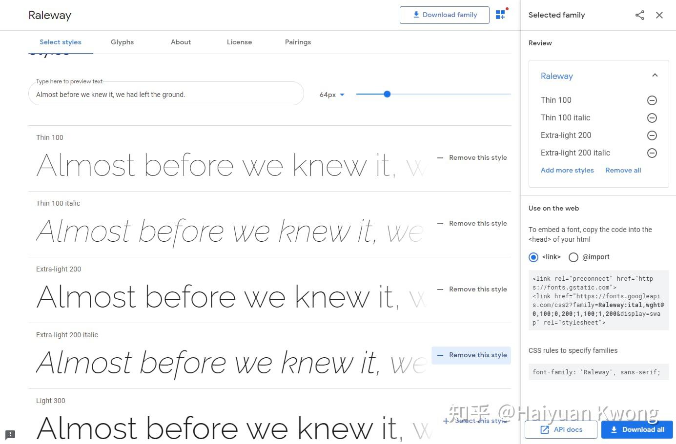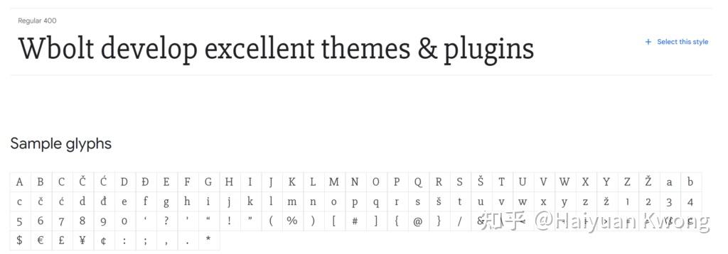 如果您自己嵌入Google字体,则可以准确选择要包含的粗细。首先,访问字体页面,然后单击所需样式旁边的选择此样式。