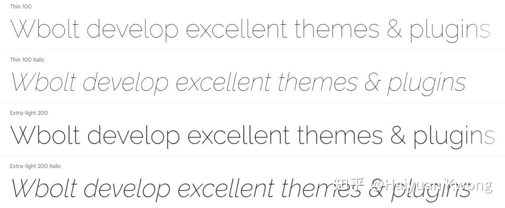 其中一些字体(如 Montserrat 和 Raleway)具有18种不同的字体粗细。虽然这有利于为您提供选择,但您不想在WordPress网站上加载所有18个字体粗细,因为它会减慢您的加载时间。