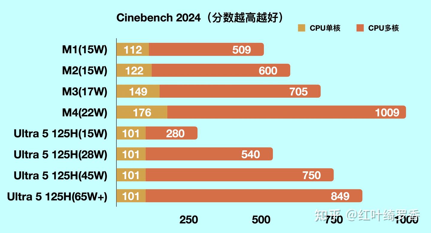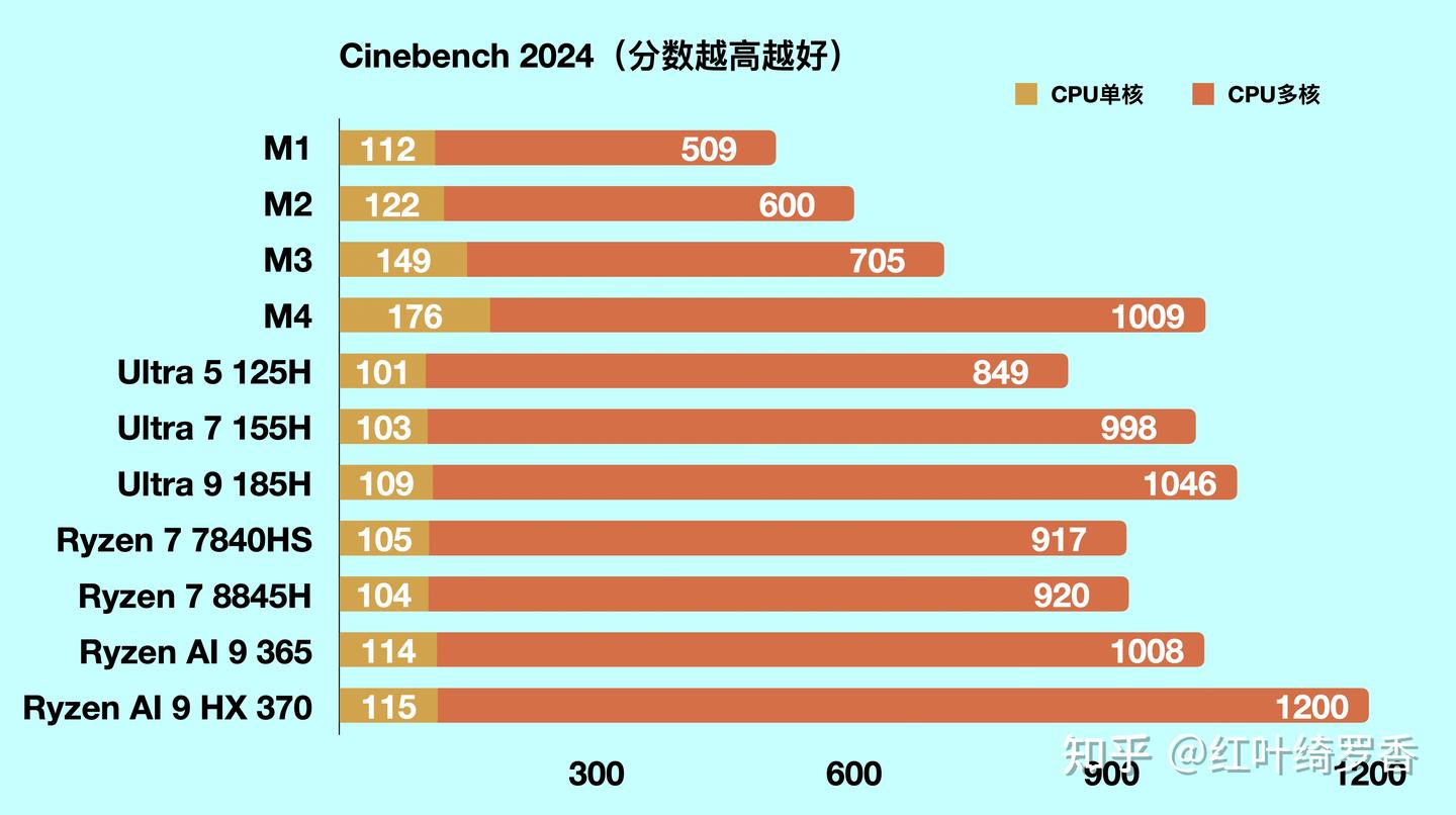 而M4单核性能就更夸张了,即便是多核性能,在笔记本端基本也没有多少对手。