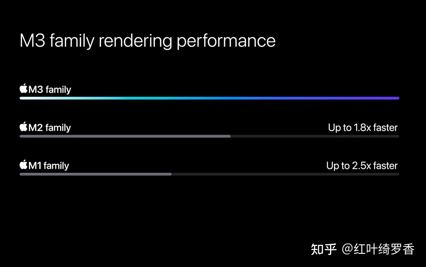 从M3开始,苹果给Apple Silicon M系列芯片引入了硬件光追、网格着色以及动态缓存等一系列新特性,3D渲染性能大幅提升。