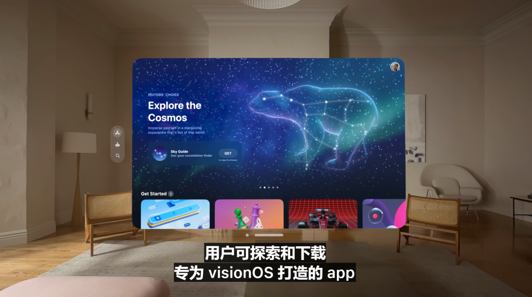 Vision Pro 将拥有独立的 App Store,用户可以探索和下载专为 visionOS 打造的 app。