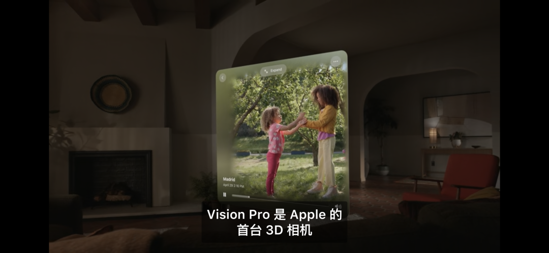 值得一提的是,Vision Pro 是苹果首次搭载 3D 相机的个人设备,可以拍全景照片和全景视频,并在设备内播放。