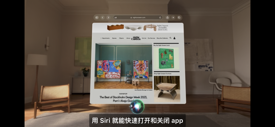 演示画面里,设备内部的界面设计看起来就像真实在自己所处的房间中。用户可以在空间里进行多个不同界面的切换,可以将任意屏幕放置在自己眼前,并在视距范围内自由调整。