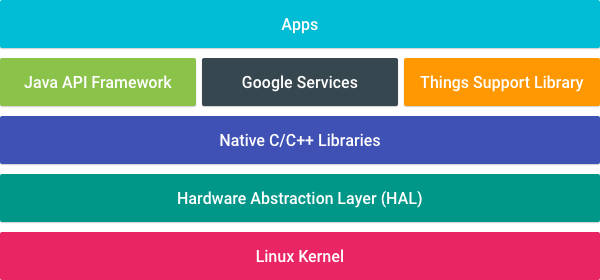 - 还有 AndroidThings 开发,AndroidThings 是基于 android 精简,添加了相关支持库发展而来,可以让我们使用 android 技术栈来开发物联网 app。AndroidThings 系统的缺点是设备贵,最便宜的也得200的开发板才能跑得起来,像那些非常便宜的物联网设备还是使用 STM32 这种开发方式合适。但是 AndroidThings 对于显示支持非常好,碾压其他物联网 OS,还能使用 java 这种高级语言开发,大大简化开发难度。AndroidThings OS 的特点是整个 OS 只有一个 app,开机直接运行,就是这样,大型智能设备上都是用的 AndroidThings OS