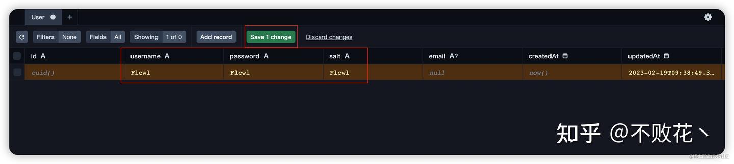 username、password、salt字段下输入内容即可(这里用于演示统一输入Flcwl)。其它字段要么是自动生成,要么是可选非必填,我们直接忽视。