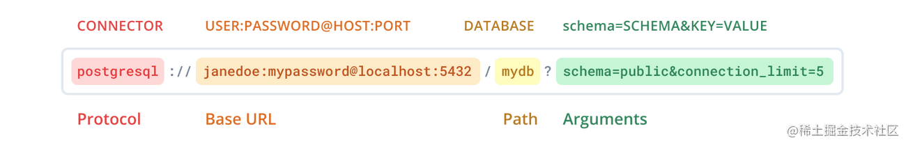 在 schema.prisma 文件中可以看到,默认数据库配置的就是 postgresql。所以,我们只需要替换建立连接的 url 即可,具体如何配置参考如下。