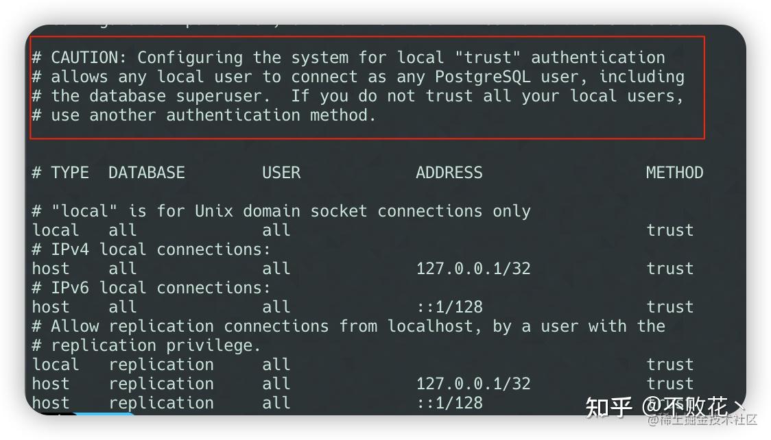 所以在生产环境,大家一定要配置好合适的 PostgreSQL 访问安全策略,具体认证方式参考 21.5. Password Authentication
